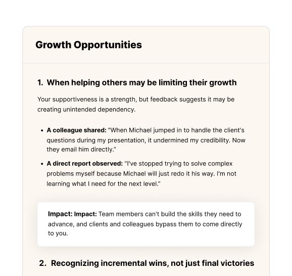 Personalized insights report and one-on-one development planning session with actionable growth steps